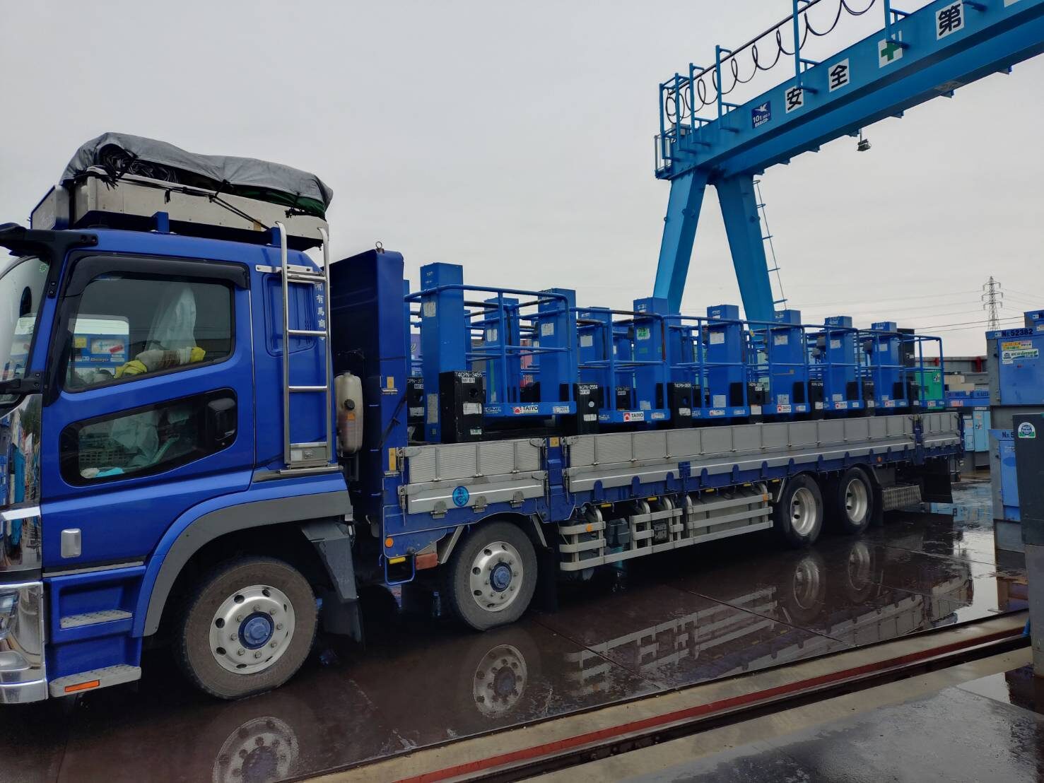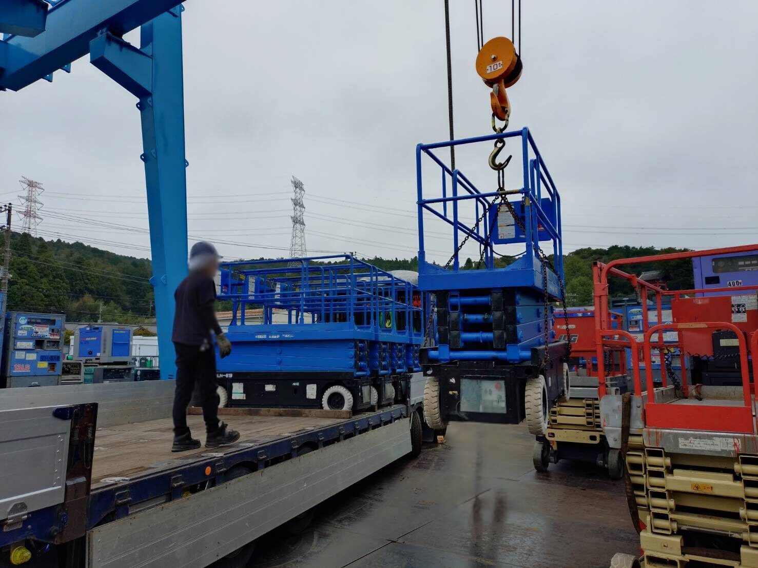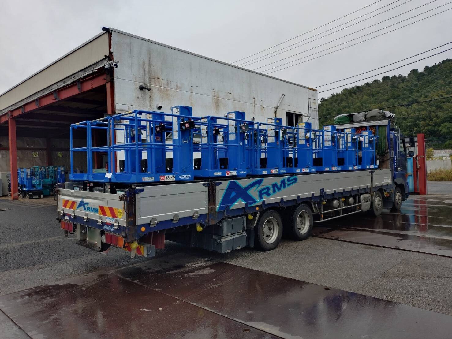 今回は大型トラック4台分の高所作業車を出荷しました。