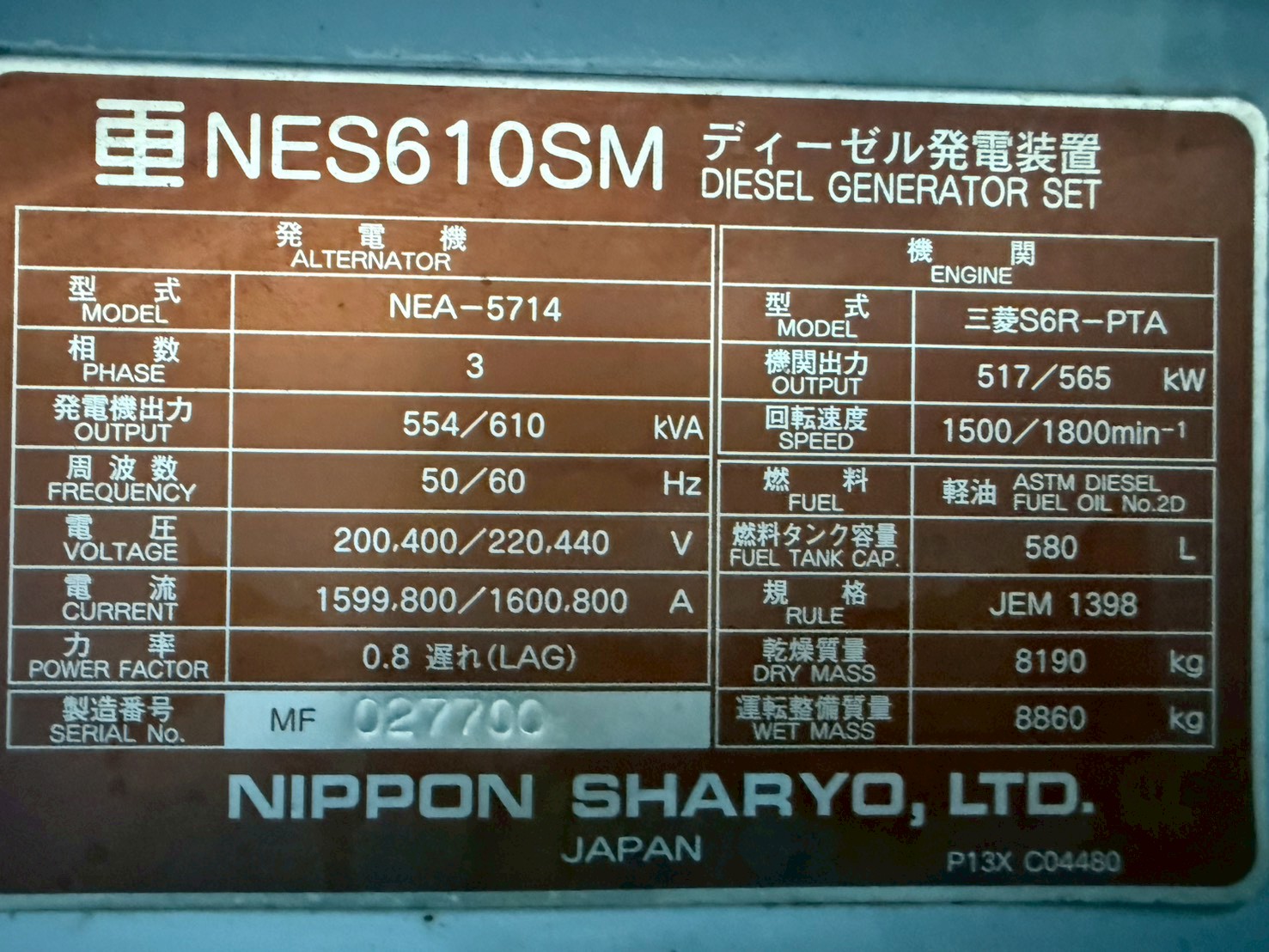 中古発電機 NES610SM #242