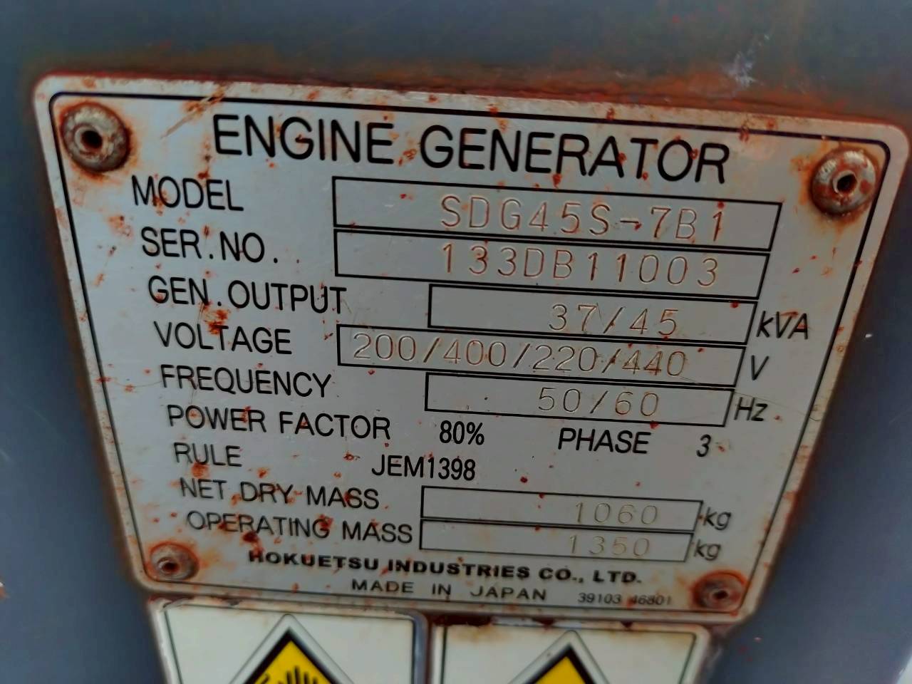 中古発電機 SDG45S-7B1 #180