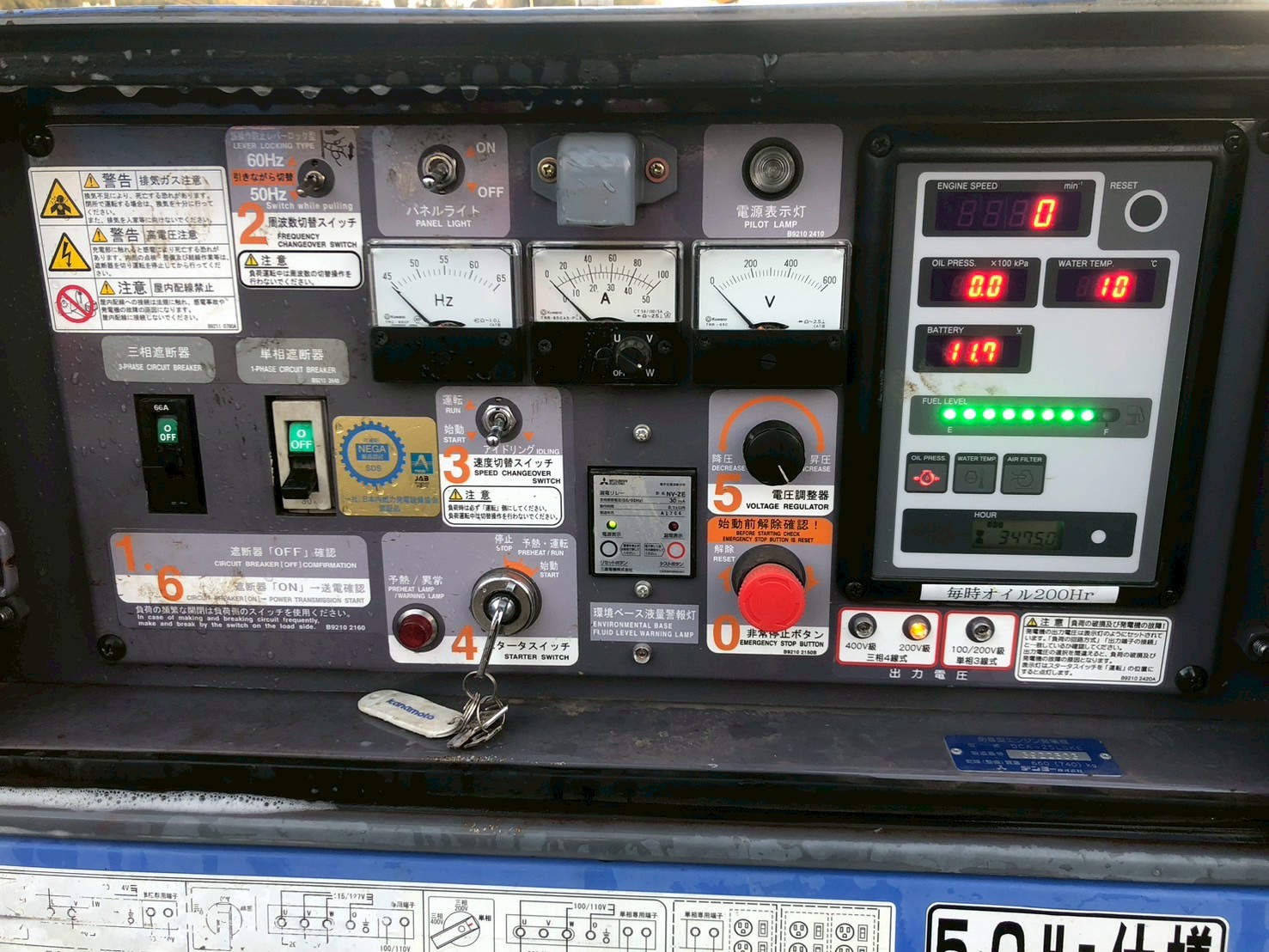 運転時間の表記は現在のアワーメーターに表示されている時間であり実働を保証するものではありません。